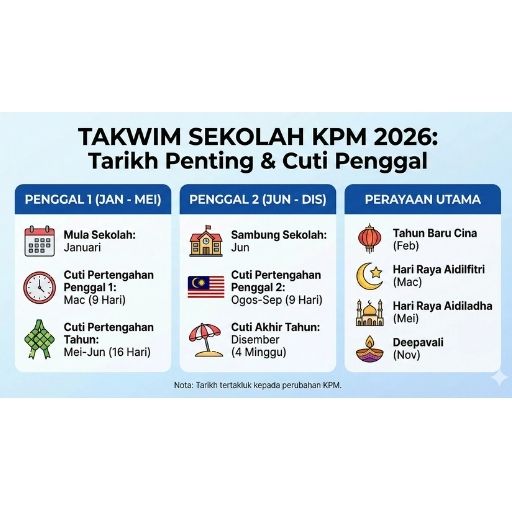 (Penafian: Tarikh adalah berdasarkan Surat Siaran KPM Bil 3 Tahun 2025 Kalendar Akademik 2026. Sebarang perubahan tertakluk kepada KPM.)